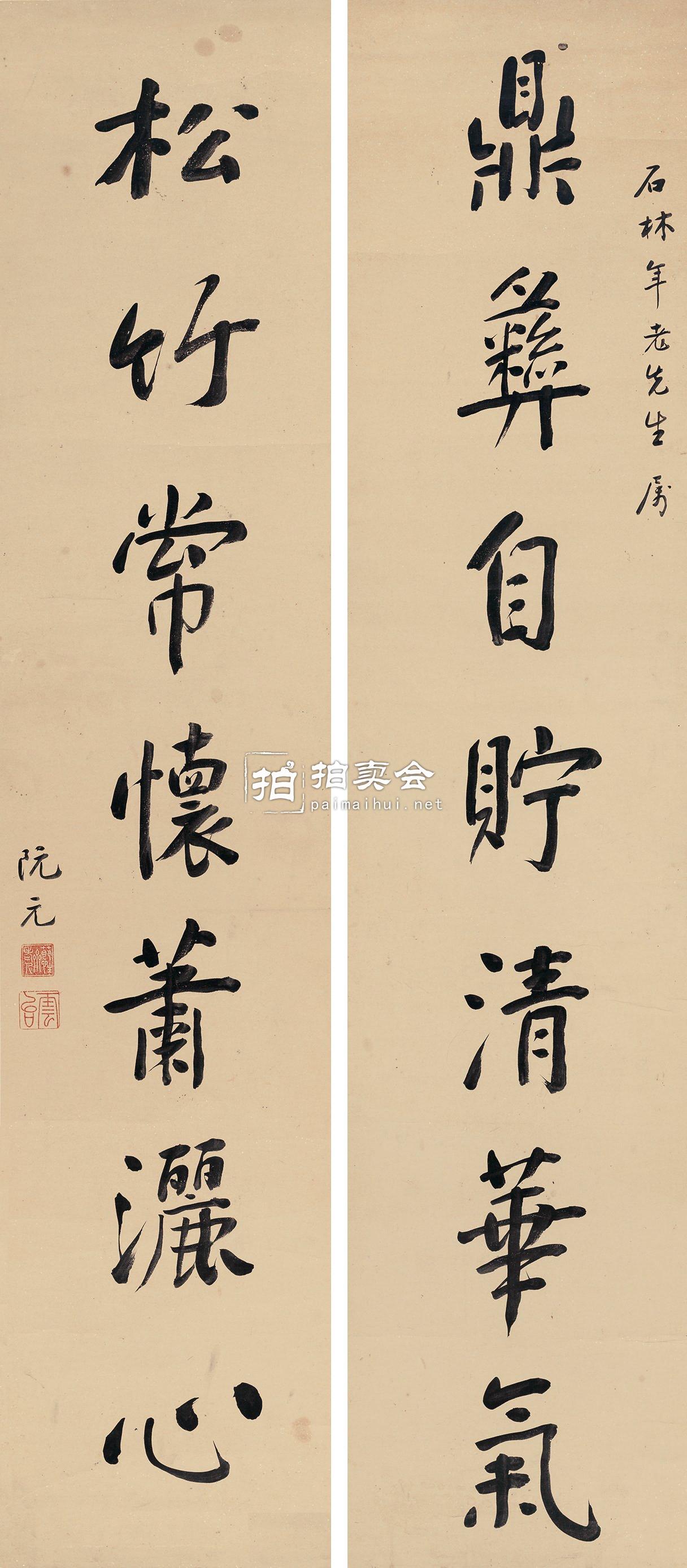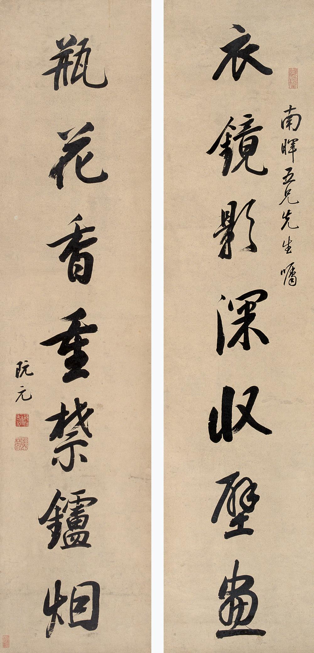 是年,作《行書七言聯》,鈐印:「節性齋老人」、「萬柳堂」。